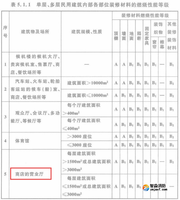 附《建筑內(nèi)部裝修設(shè)計防火規(guī)范》GB 50222-2017有關(guān)商店建筑裝修材料燃燒性能標準要求: